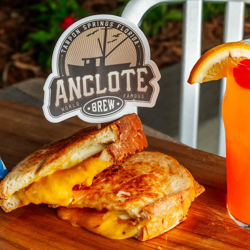 Pair your drink with our melty, over-the-top gourmet grilled cheese sandwiches and playful bar bites—because beach days work up an appetite. Find us soaking up the sun in Tarpon Springs, FL, right on the World-Famous Sponge Docks.